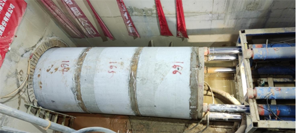 该项目为矩形顶管项目,管材断面尺寸6.3m*6.8m,单顶长度100米;通过采用创新性措施,克服了矩形顶管在30MPa以上硬度砂岩地质中顶进的先例。 -